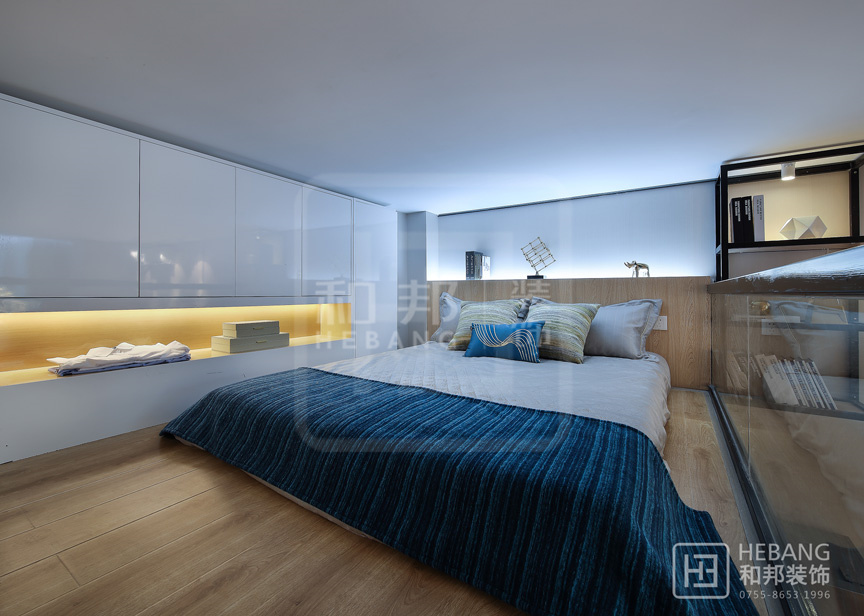 Loft公寓借助其層高的優勢,可以盡情的對其空間進行分割利用。設計注重輕裝修重裝飾,從軟裝入手提升樣板間的空間體驗,借用樓梯增強收納空間,簡約和靈動空間能給許多年輕人舒適自由